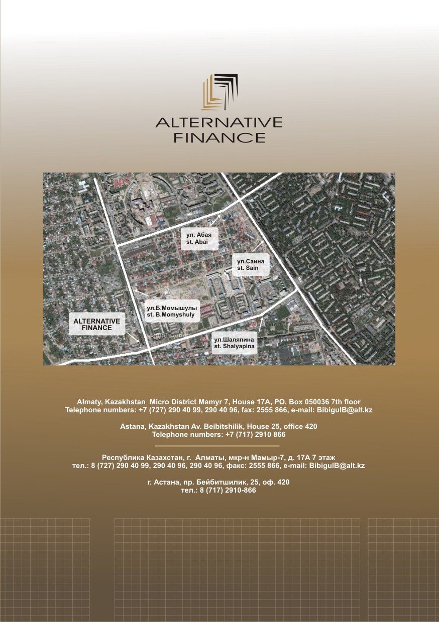 Адрес: 050036, Казахстан, Алматы, г. Алматы, мкр. Мамыр-7, д.17А, 7-й этаж